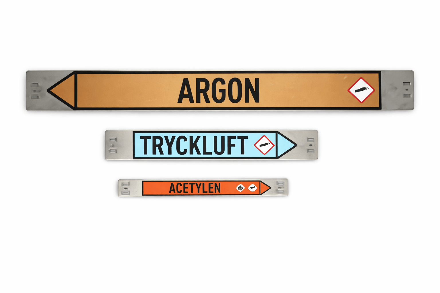 When labelling hot pipes, polyester pipe marking stickers are recommended (up to 150 °C).