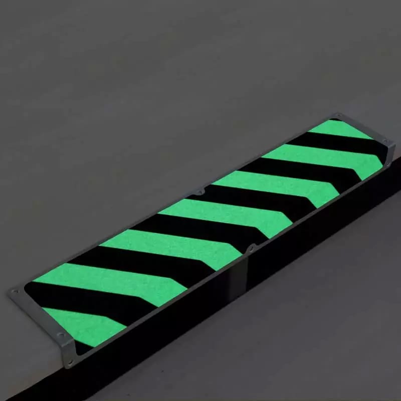 Trappstegsnos efterlysande halkskydd i svart/vit aluminium 120 x 635 x 45 mm.