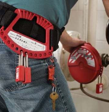 Hänglåshållare för säkerhetshänglås som används för att samla och hålla lås nära låspunkten vid arbete. Underlättar hantering och ger överblick över vilka lås som används.