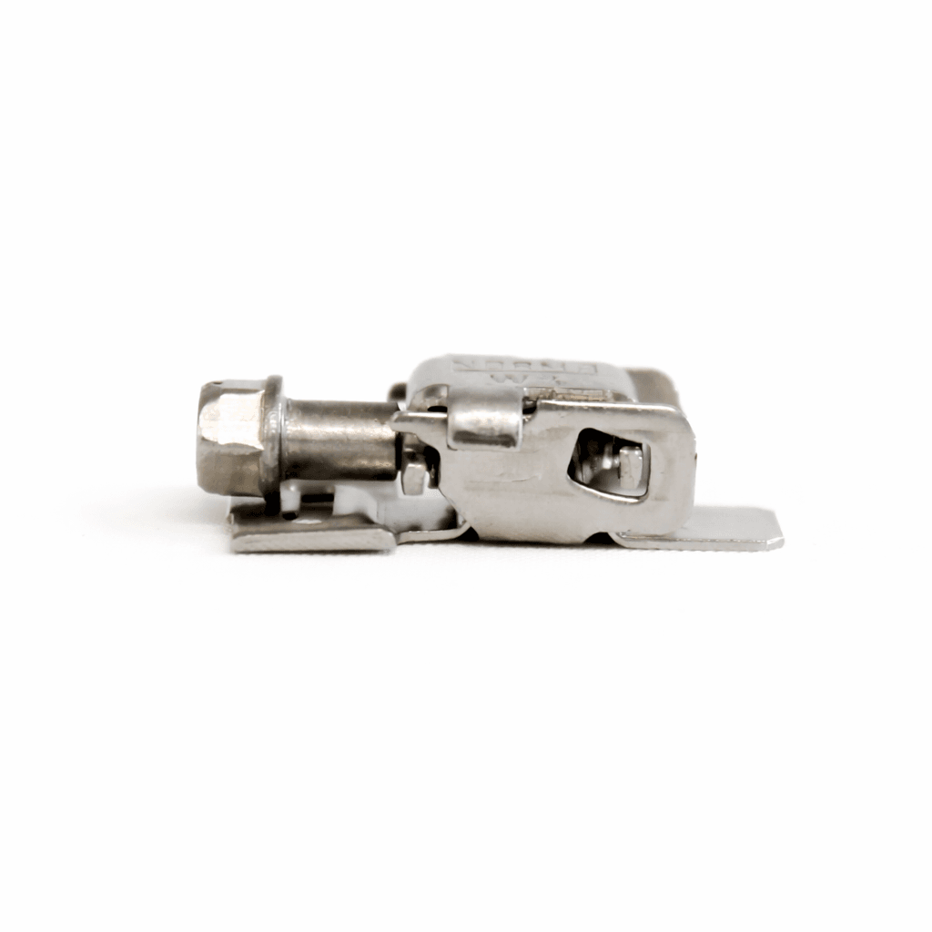 Robust och korrosionsbeständigt skruvhus som ger en säker och hållbar låsning av spännband. Lämpligt för installationer i krävande miljöer där hög hållfasthet och lång livslängd krävs. Enkel att montera och ger ett stabilt grepp om bandet.